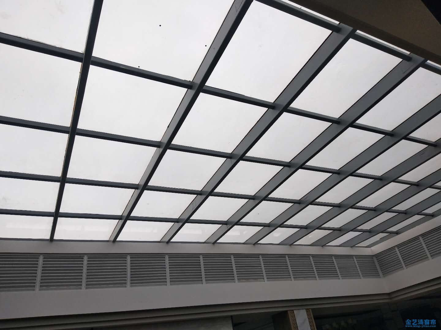 佛山电动天棚帘安装效果_禅城南庄强辉陶瓷中空采光顶遮阳窗帘